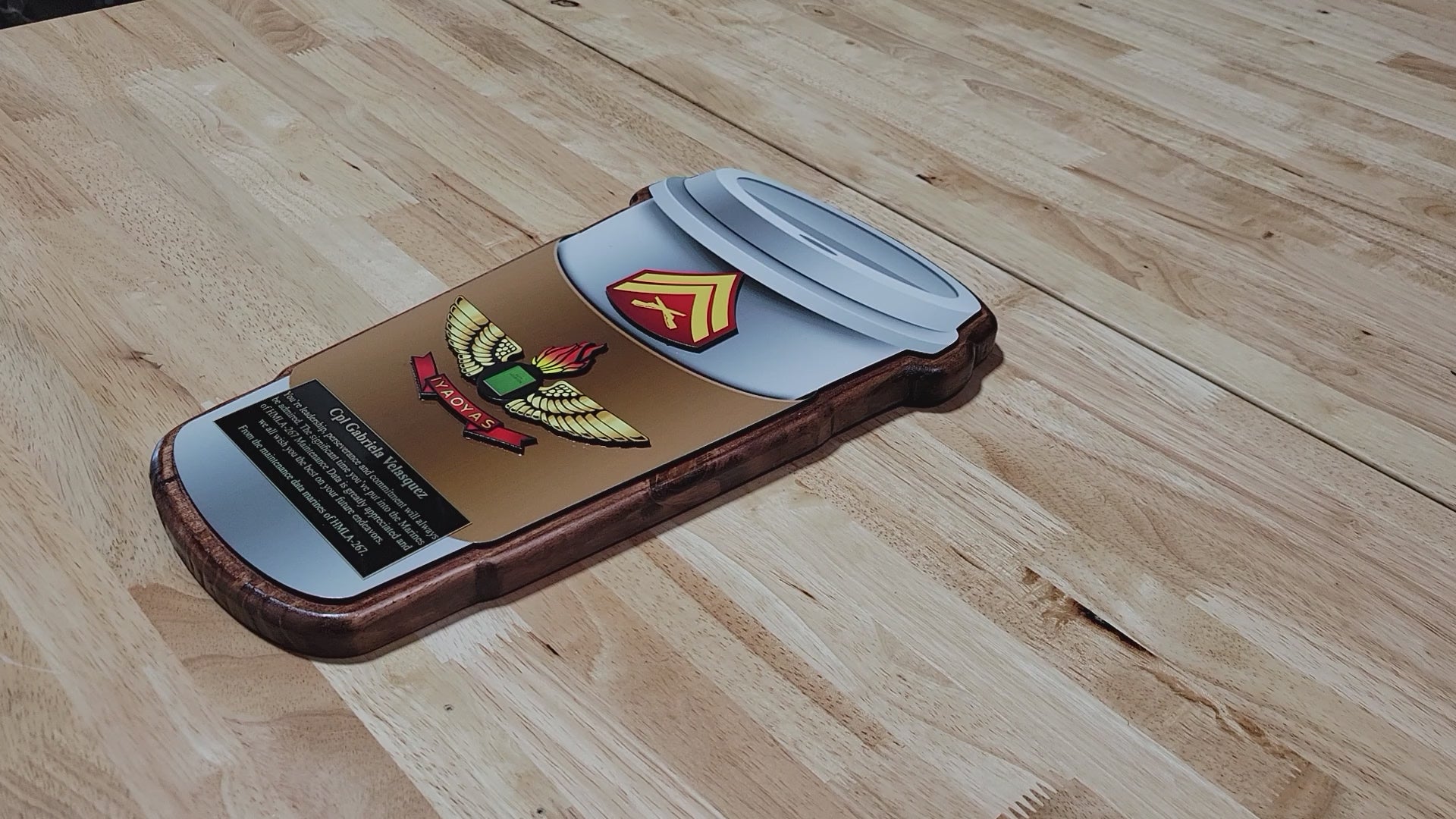 Celebrate the coffee lover in your life with our 16in Coffee Cup Plaque. Perfect for PCS, retirement, or any special occasion, this unique plaque adds a touch of java to any decor. Raise a mug to honor and appreciate our favorite beverage.